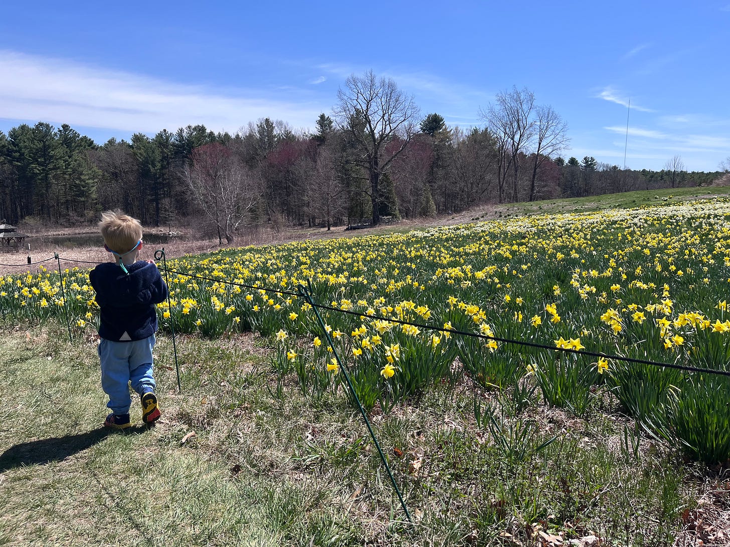 Immediately after this photo was taken, my toddler flopped down and smelled the flowers for a half hour. Talk about slowing down!